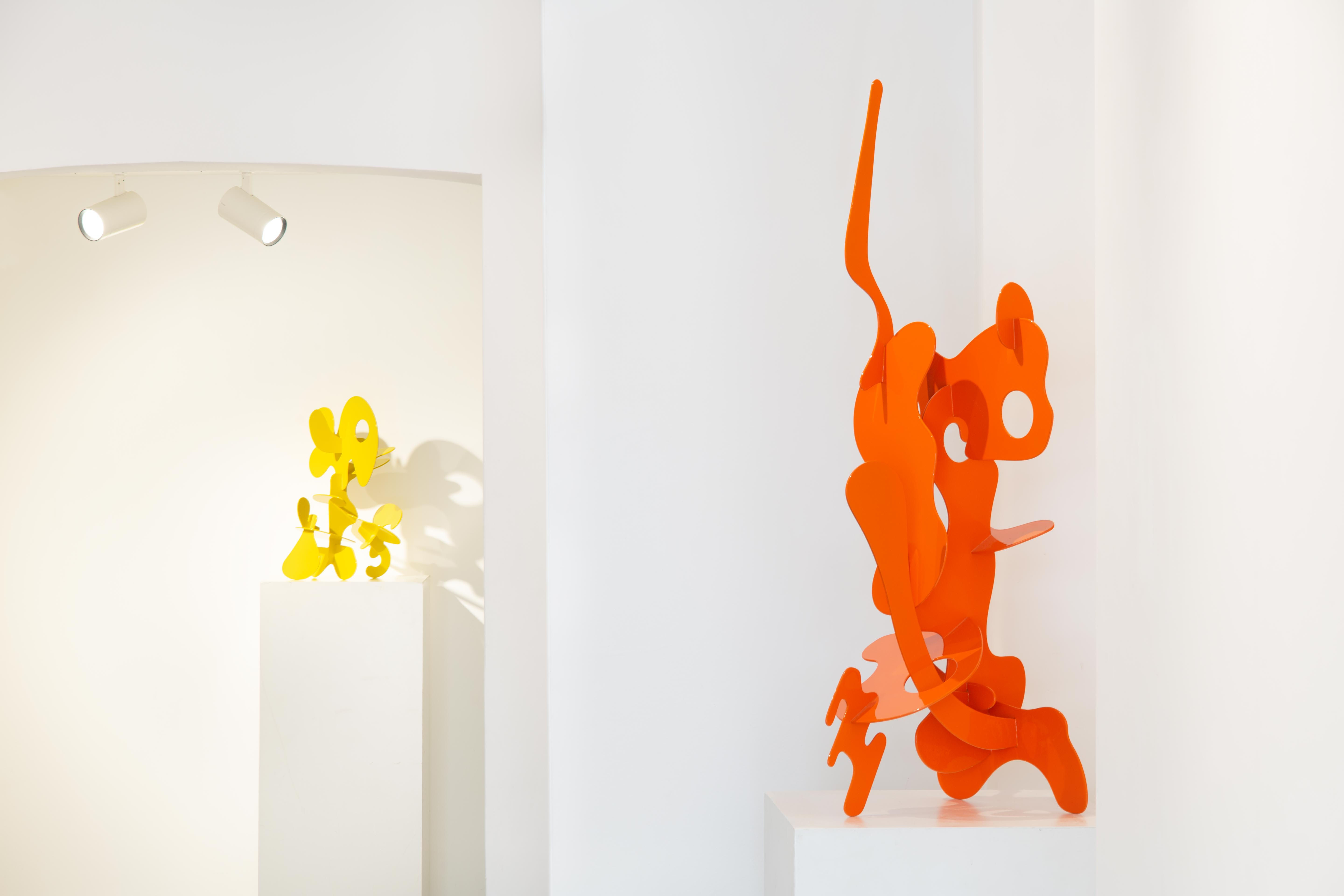Indeed, the most easily perceptible references in Misha's work range from fragmented cubism to biomorphic surrealism or proto-minimalism, passing through the dynamic visual humour of Walt Disney. Apparently, these are references that are not surprisingly new until the viewer ends up intuiting that our artist has infused her sculptures with a powerful shamanic or even pantheistic vigour of healing intentions. Indeed, they are shapes inspired by parameters present in the natural world, which provide works with openness and structural security. On the other hand, the colours chosen in combination with the shapes work like a solo (soul) singer, provoking a strong emotional response from the choir (spectators).